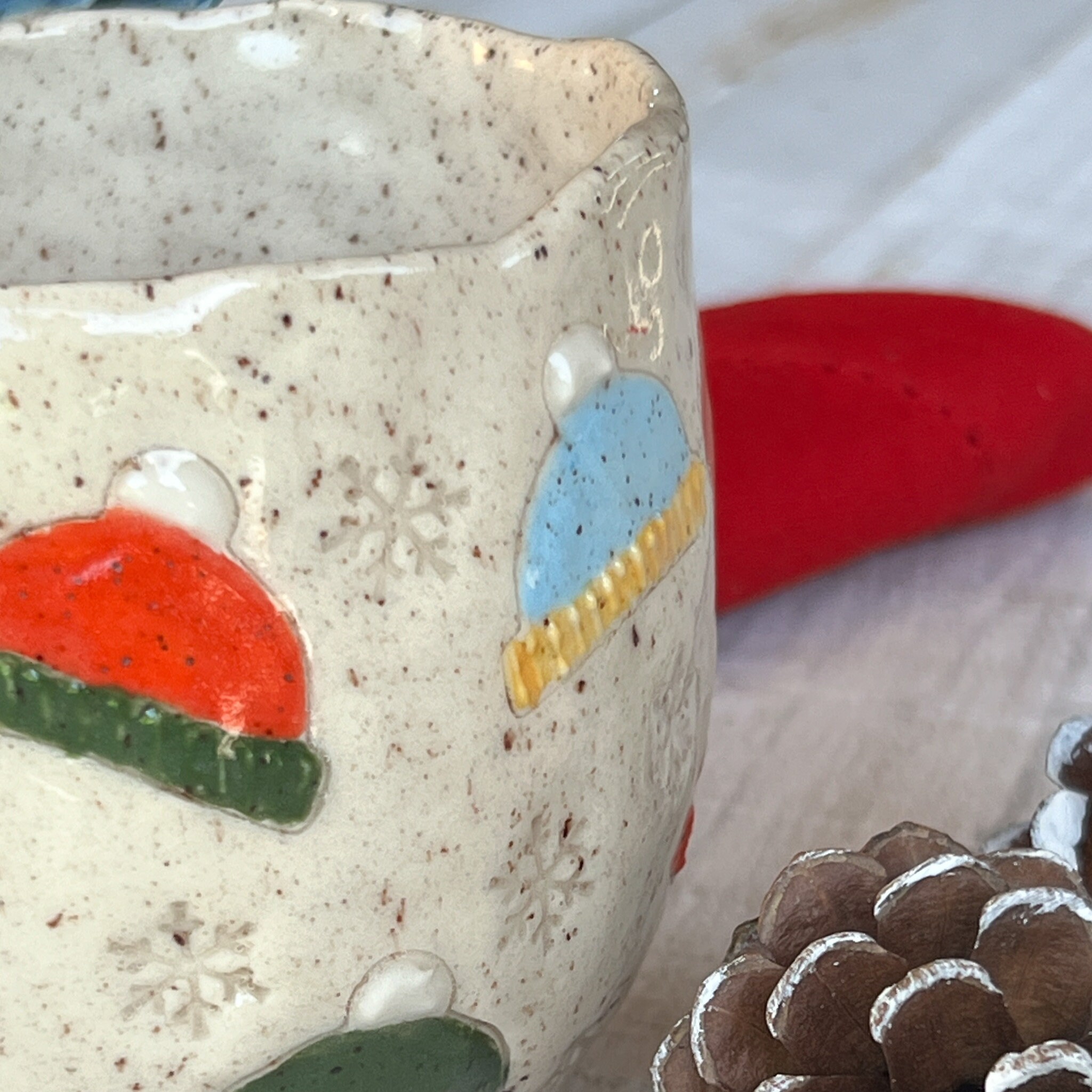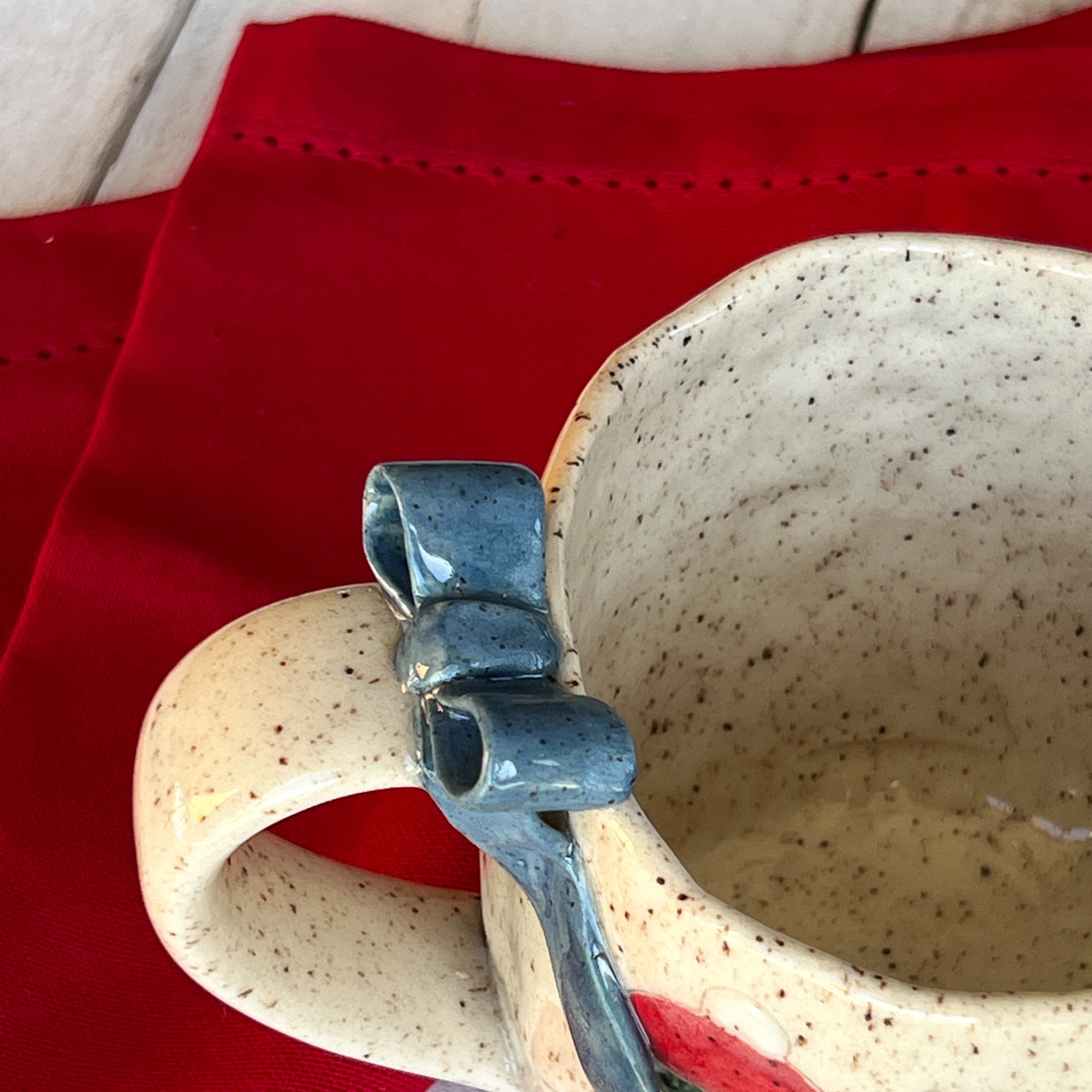 Celabrate the Holiday spirit with a handmade Christmas mug, perfect for sipping hot cocoa by the fire or enjoying a crazy morning coffee. This unique ceramic mug features a charming live rim and hand-painted design, making it a delightful addition to your festive decor or a thoughtful gift for a loved one.