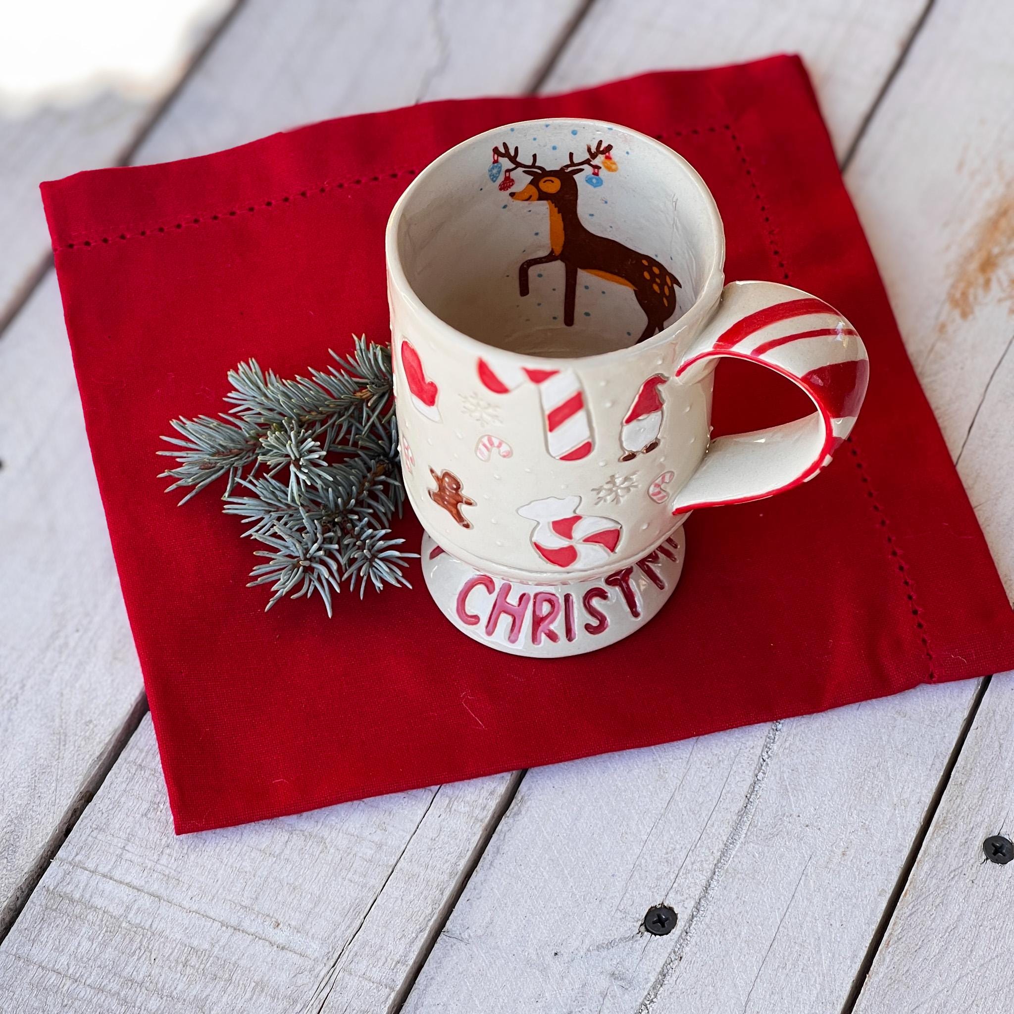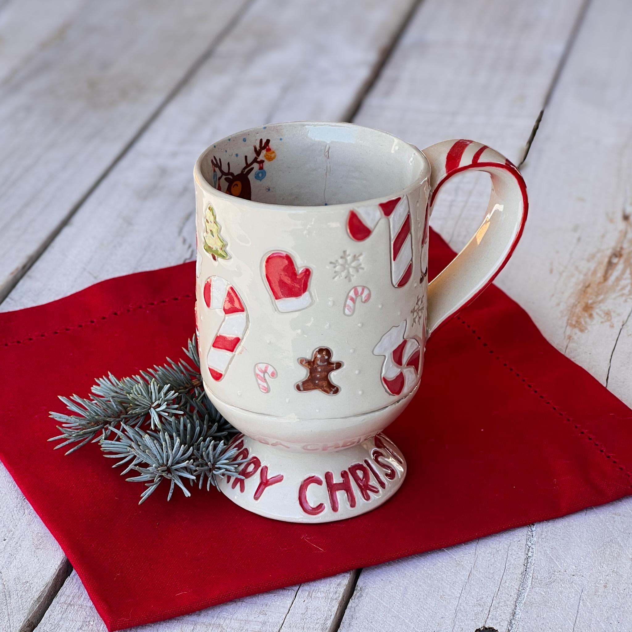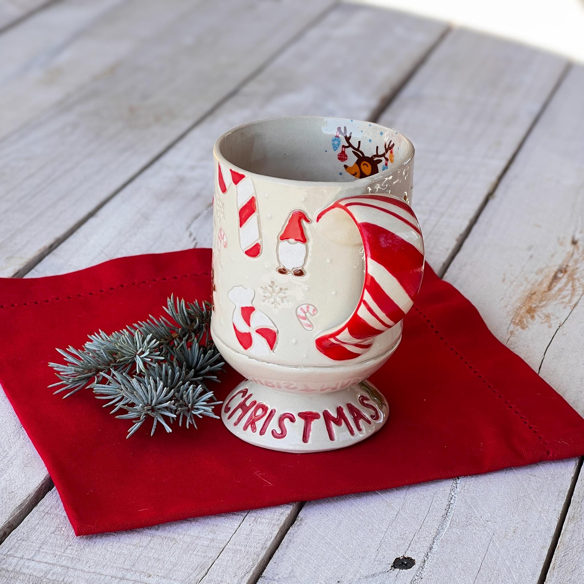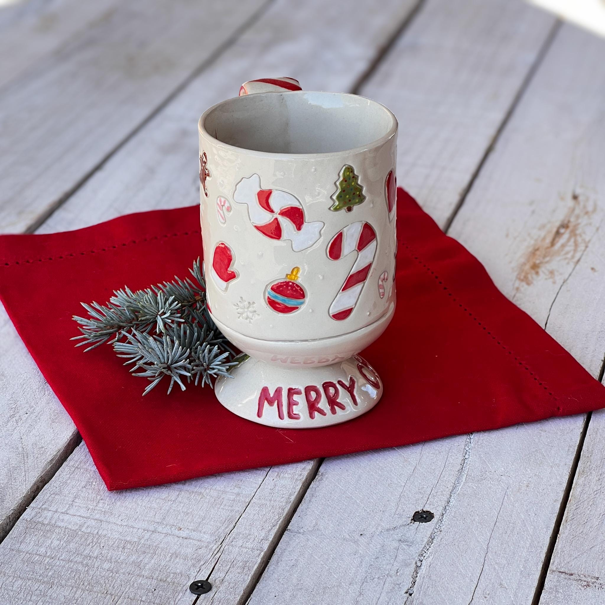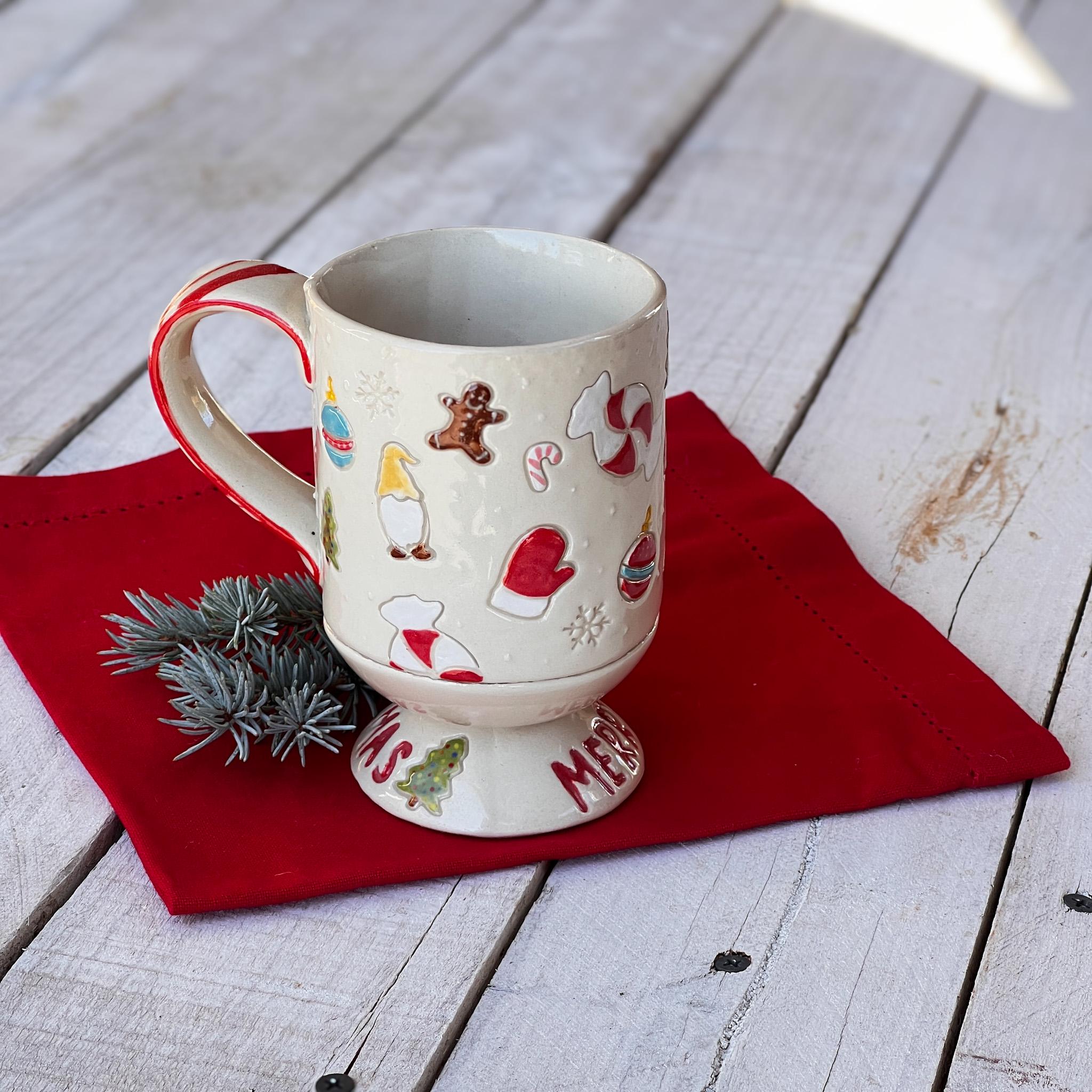 Handbuilt Christmas Mug – Unique Ceramic Holiday Coffee Cup – Handmade Pottery.