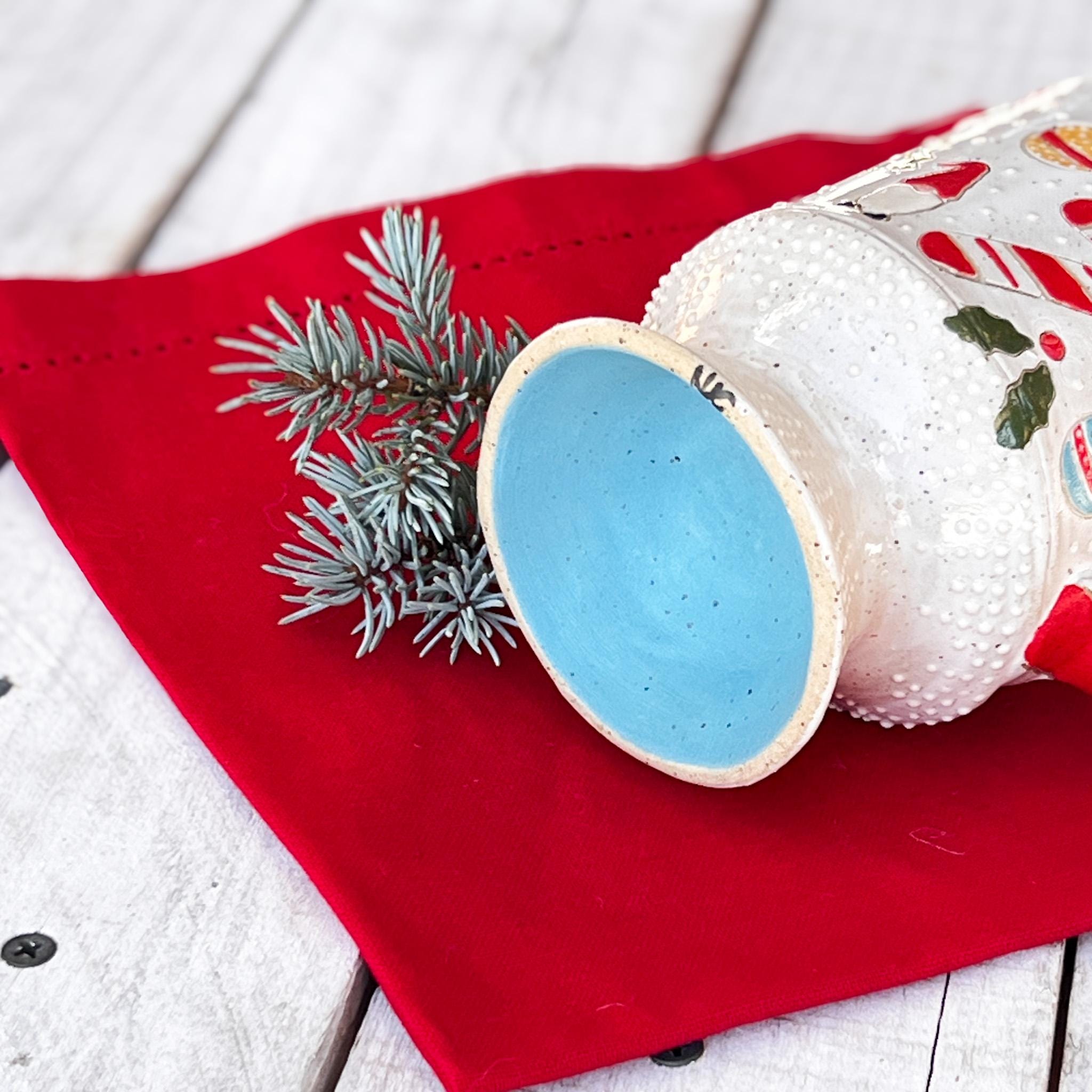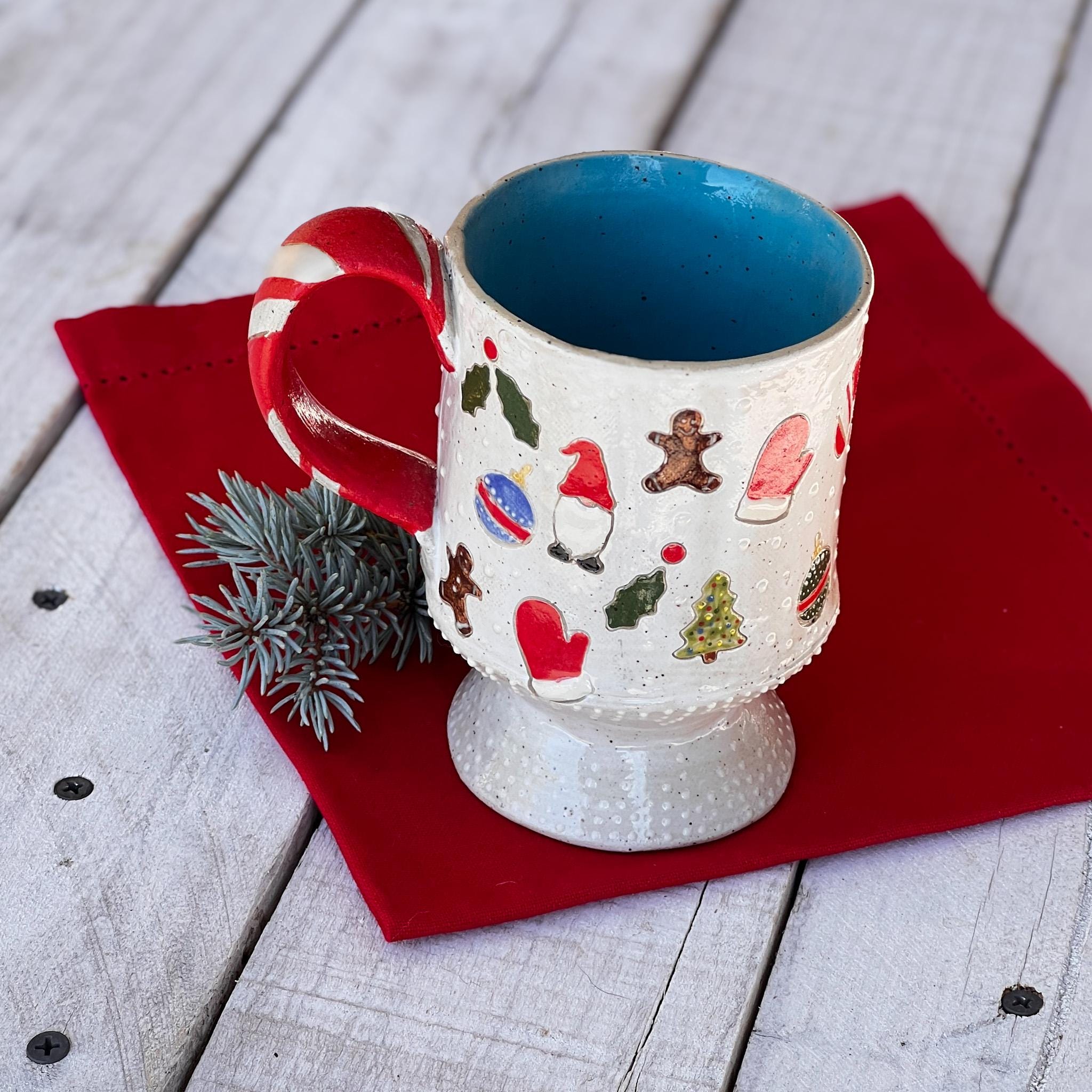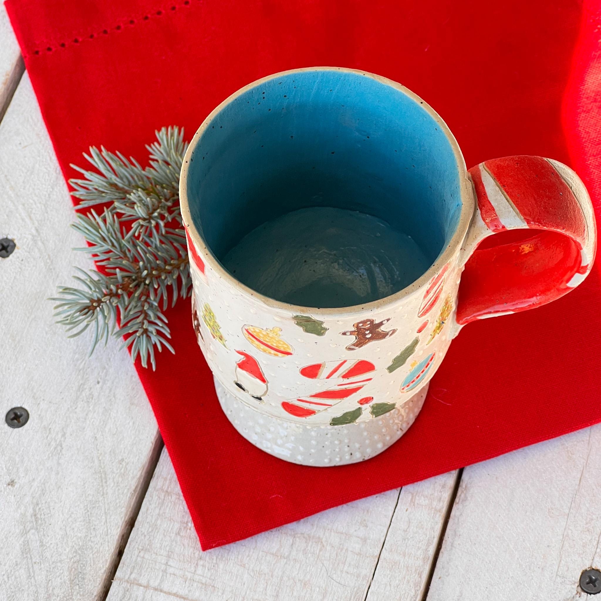 Handbuilt Christmas Mug – Unique Ceramic Holiday Coffee Cup – Handmade Pottery.