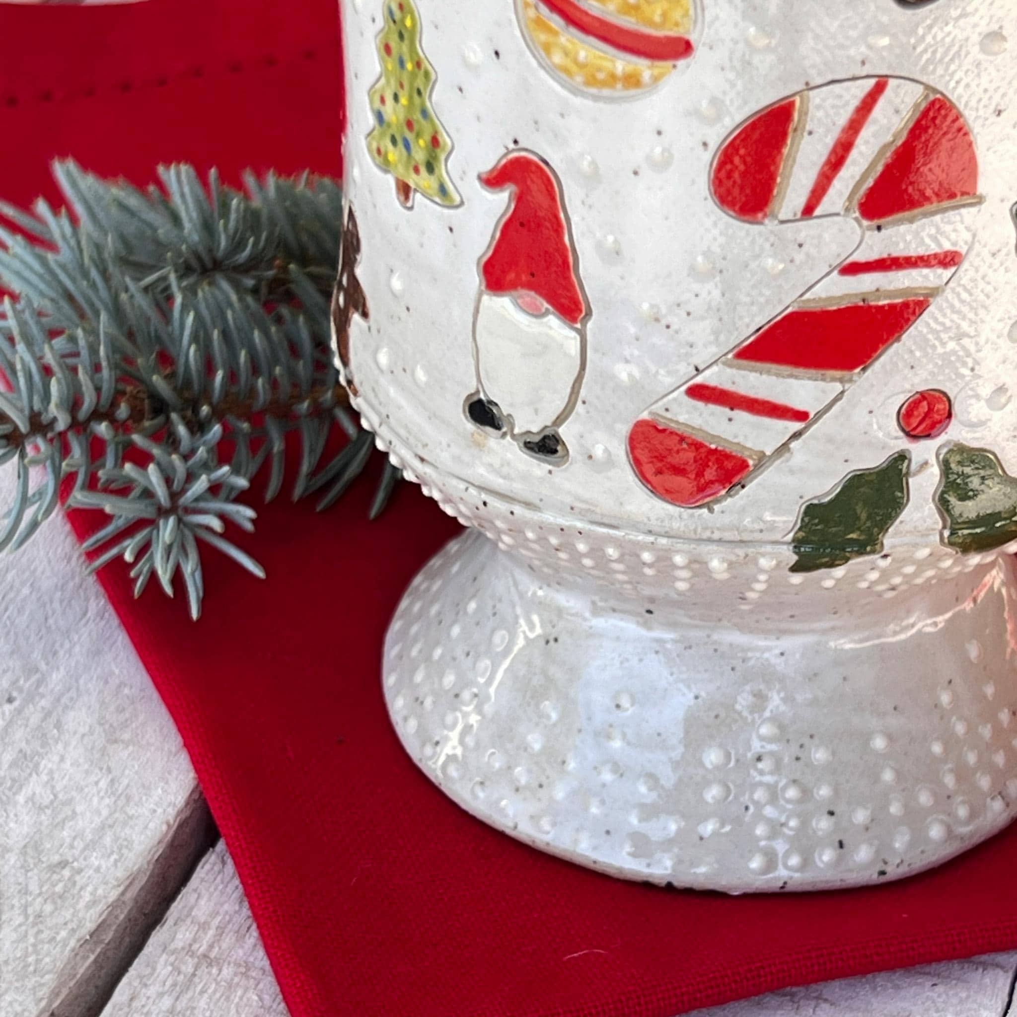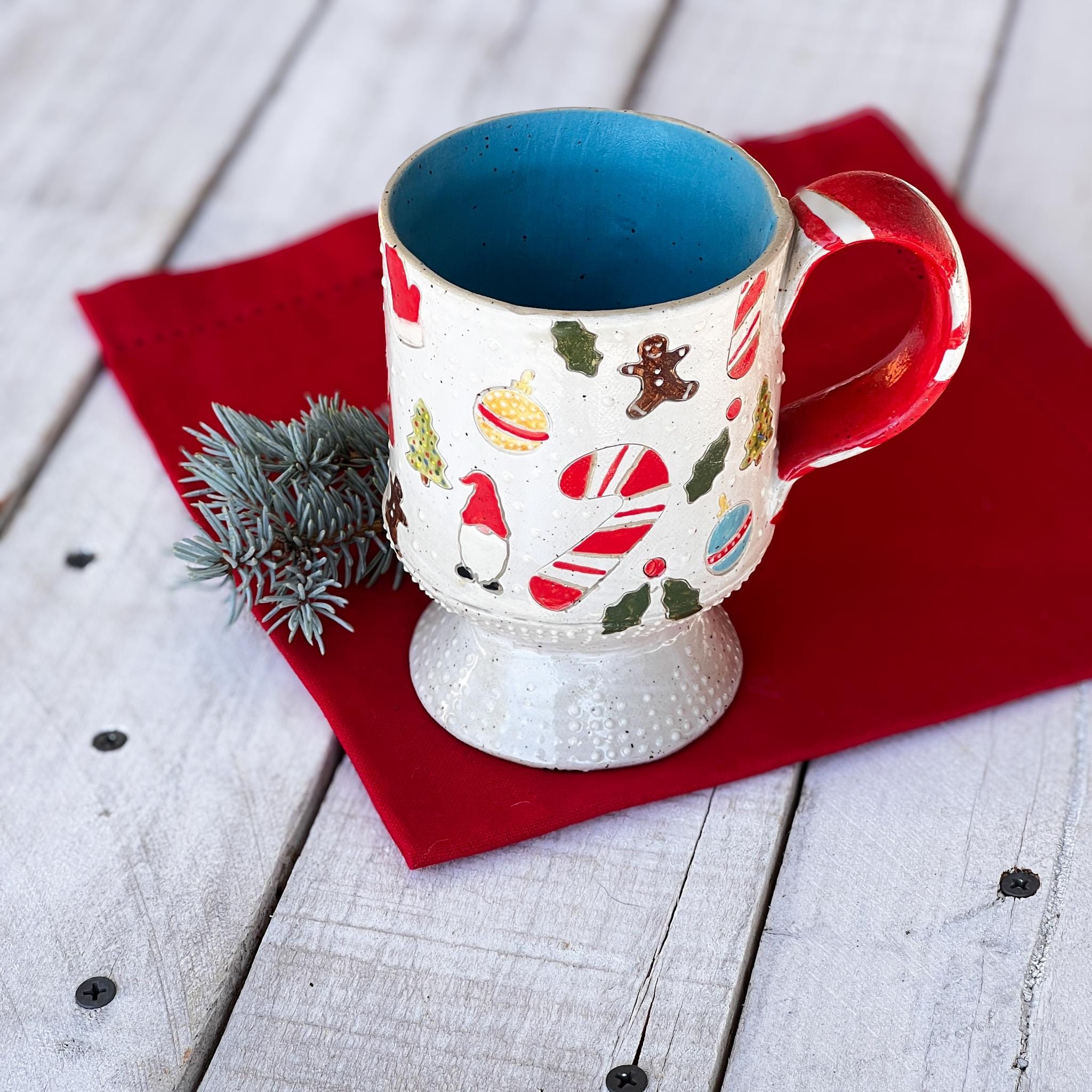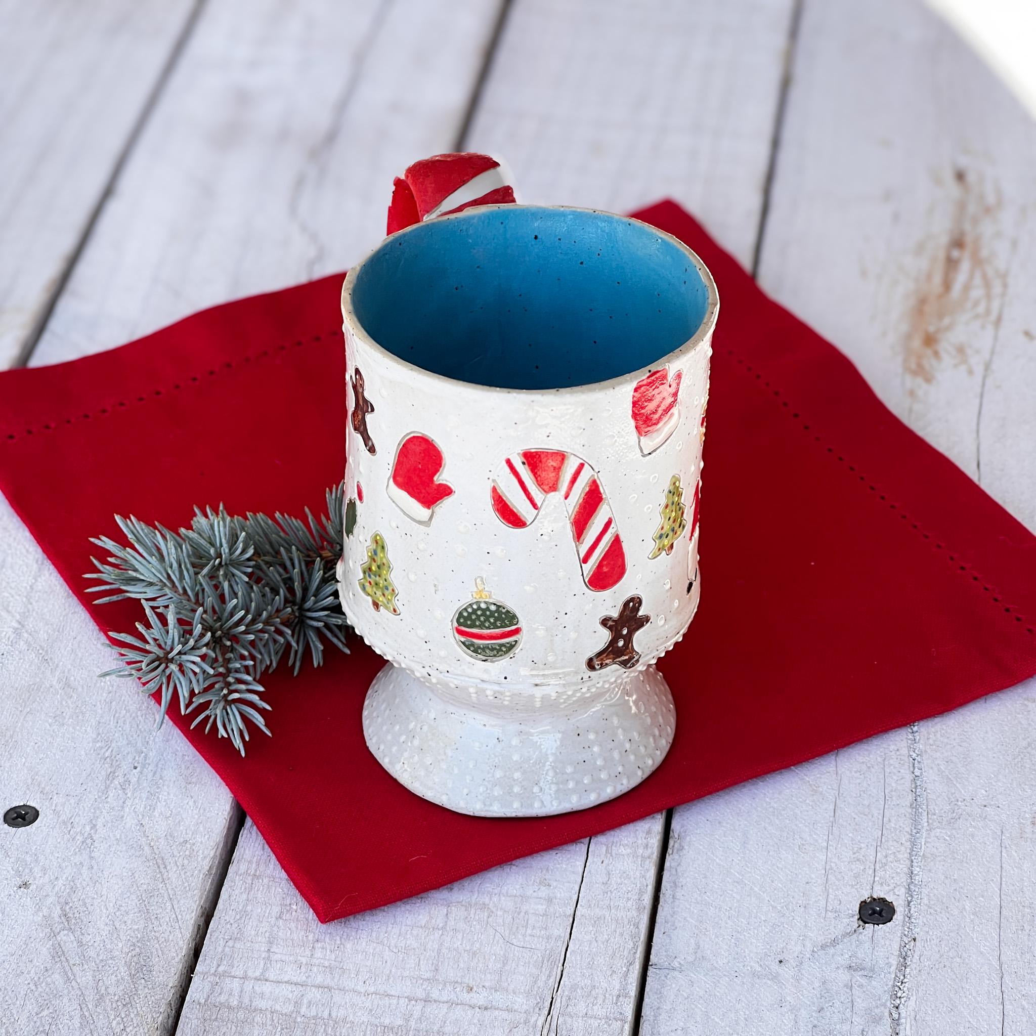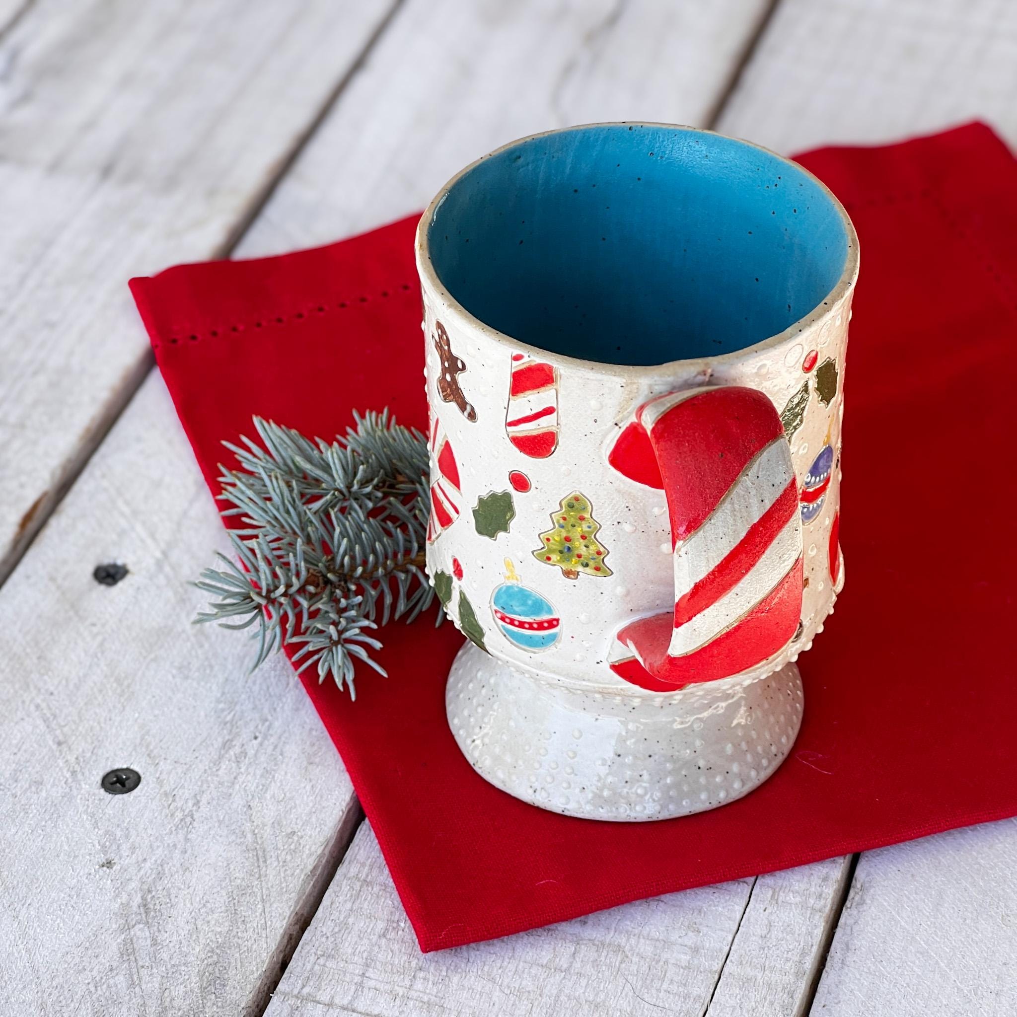 Handbuilt Christmas Mug – Unique Ceramic Holiday Coffee Cup – Handmade Pottery.